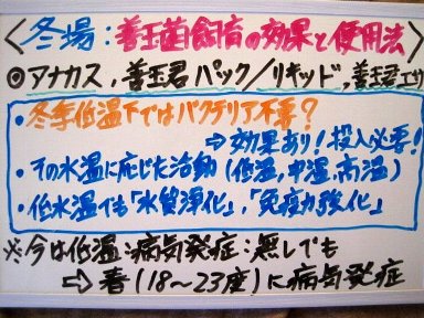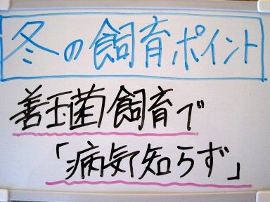 | < 12月第1週初めの飼育状況:冬の飼育ポイント:善玉菌飼育で病気知らず!(12/1) > |