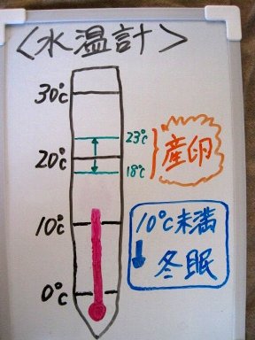 | ・今年も「暖かい12月入り」:当歳魚達は雌雄のカップリングをして放匹します。 ・今週末からは寒波の予報!魚達は冬眠に入ります。 |