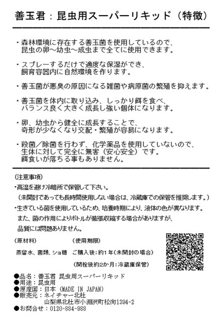 | 善玉君:昆虫用スーパーリキッド完成!善玉菌で自然界を実現! |