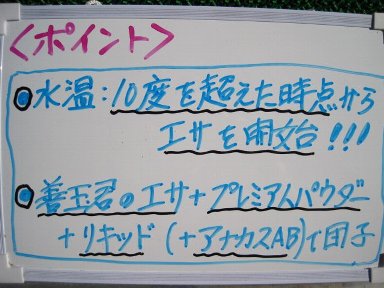 | ・薄い青水/茶褐色の善玉菌バクテリア飼育水の中で順調な動きです。 ・飼育水温が10度を超えて、 善玉君沈む餌/善玉君プレミアムパウダー/善玉君スーパーリキッドで 団子にして(午前に)給餌を開始しました。 |