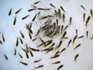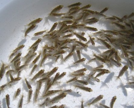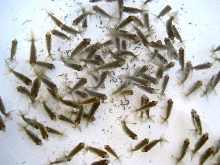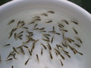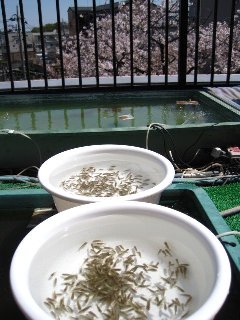 | (2月下旬孵化の稚魚達:4/3撮影) |