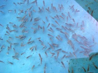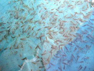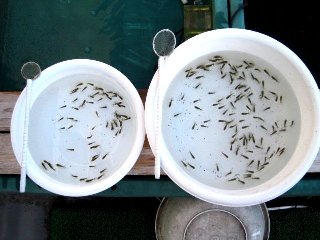 | ・平均的に揃っていて、沢山の稚魚達が残れます。 ・飼育舟を広げて、放匹数を調整していきます。 ・初夏のような気温です。飼育舟の遮光等も必要です。 |